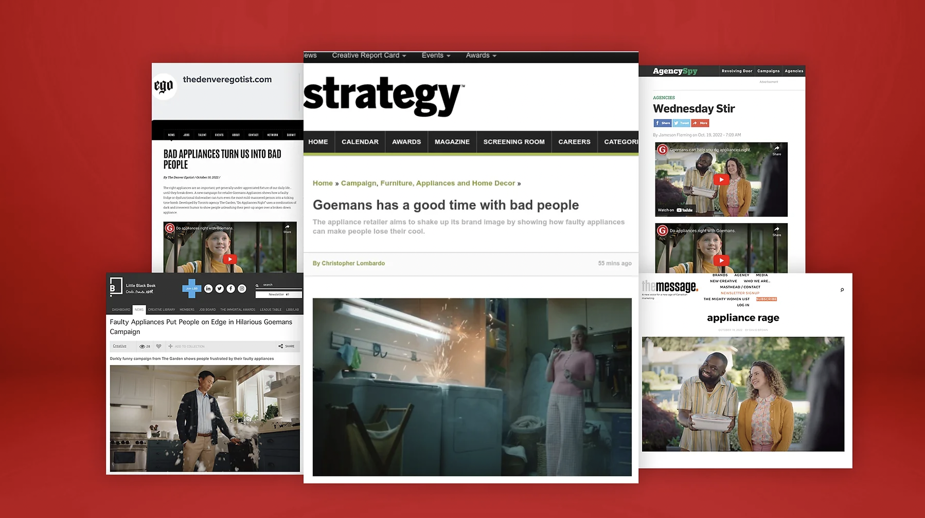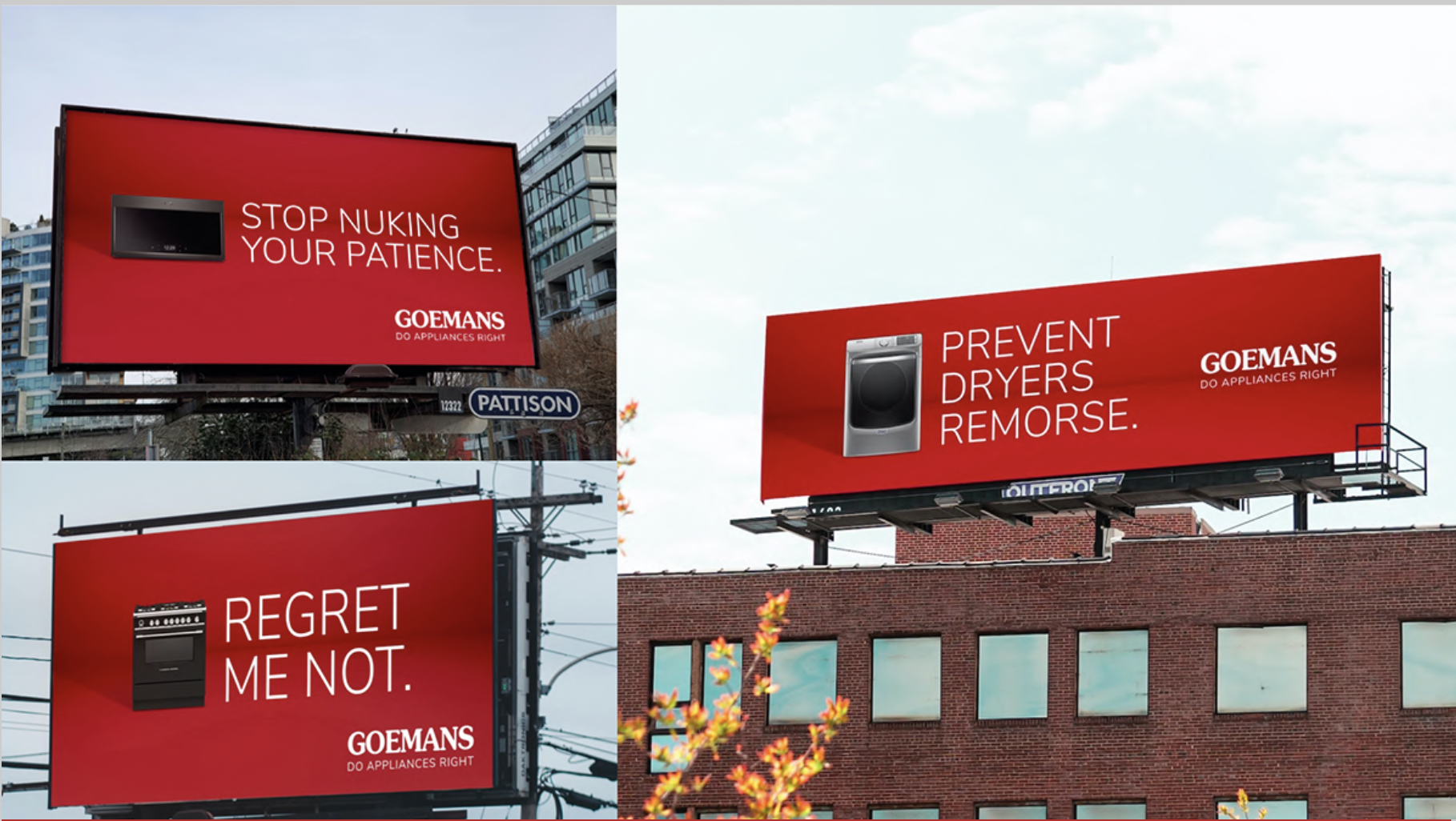A faulty appliance isn’t just a matter of overcooked lasagna or dirty silverware. When our appliances reach the breaking point - so do we. Developed as a brand platform to re-launch Goemans to Ontario, Do Appliances Right is a cheeky reminder that price isn’t always king when it comes to those big purchase decisions.