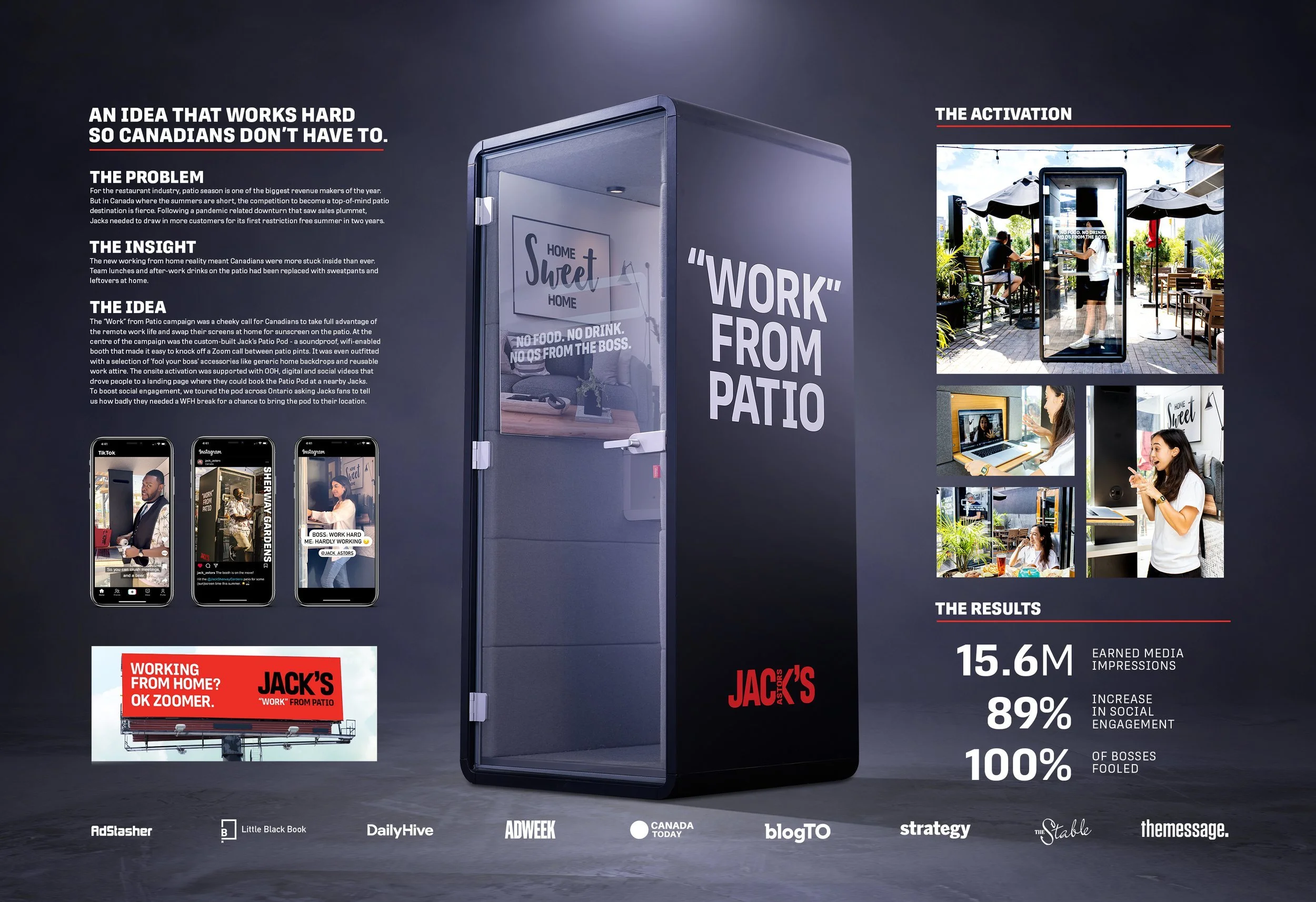 It’s the third summer of Covid and the pandemic is still casting it’s long shadow on Canada’s super short patio season. More people working from home meant less people enjoying team lunches and aprés work drinks. So Jack’s decided to make the most of the hybrid work model by encouraging people to trade WFH for WFP - “Work” From Patio.